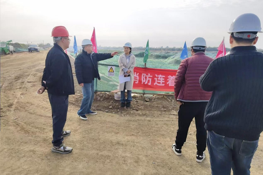 11月19日,公司支部書記、董事長袁波帶隊檢查綿陽城西建筑固廢消納場項目建設情況。(素材來源:綜合部 周星宇)