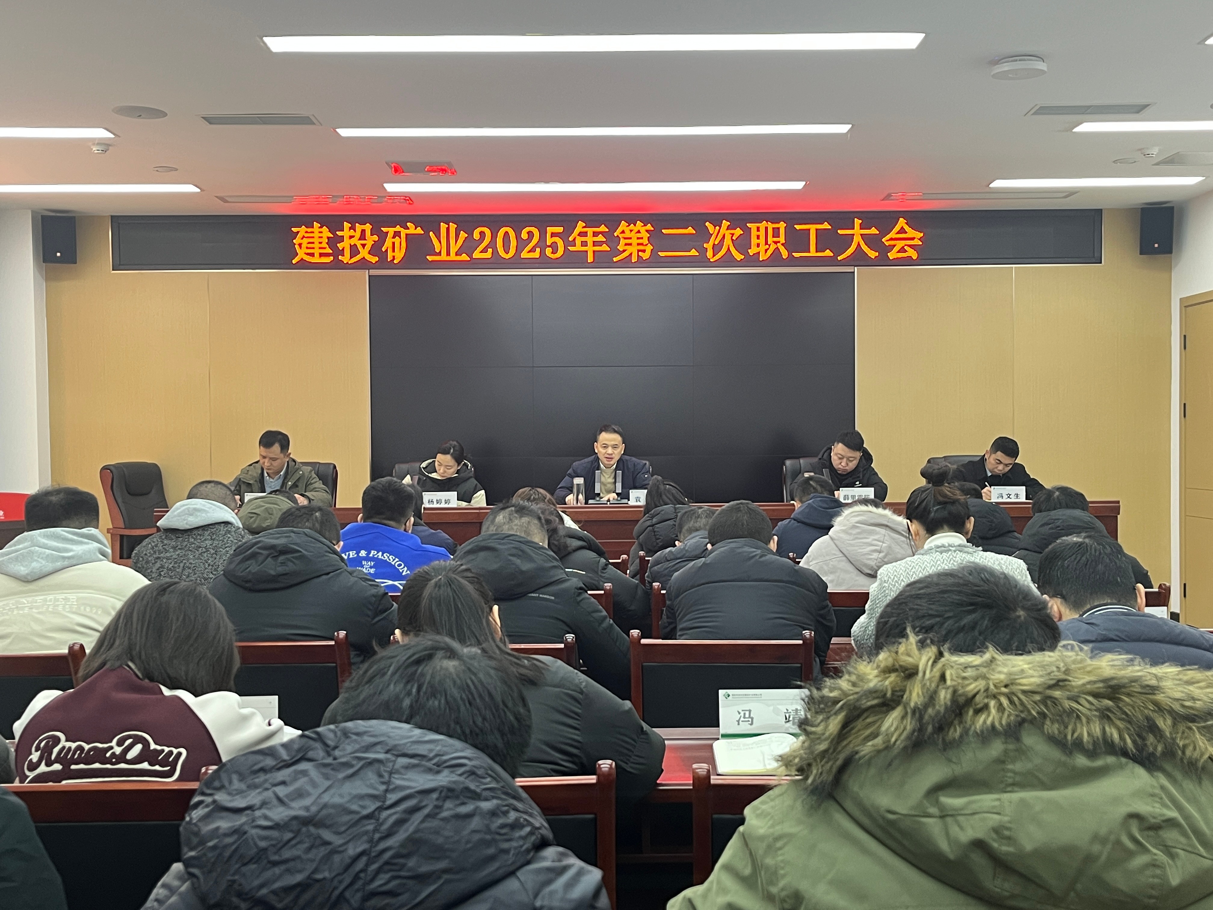 1月26日,建投礦業(yè)召開2025年第二次職工大會,傳達學(xué)習(xí)中央、省市區(qū)經(jīng)濟工作會的會議精神,以及二十屆中央紀委四次全會、省紀委十二屆四次全會、市紀委八屆五次全會、區(qū)紀委三屆五次全會的會議精神,部署貫徹落實措施。支部書記、董事長袁波出席會議并講話,副總經(jīng)理楊婷婷主持會議。