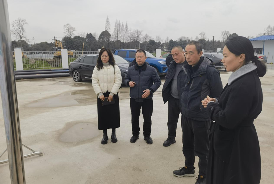2月12日,公司支部書記、董事長袁波帶隊到綿陽城西建筑固廢消納場項目檢查項目建設情況。(素材來源:工程項目部 何明鴻)