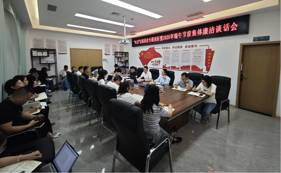 5月29日,公司召開“8.22”以案促改專題剖析暨端午節前集體廉潔談話會。公司黨部書記、董事長袁波出席會議并講話。